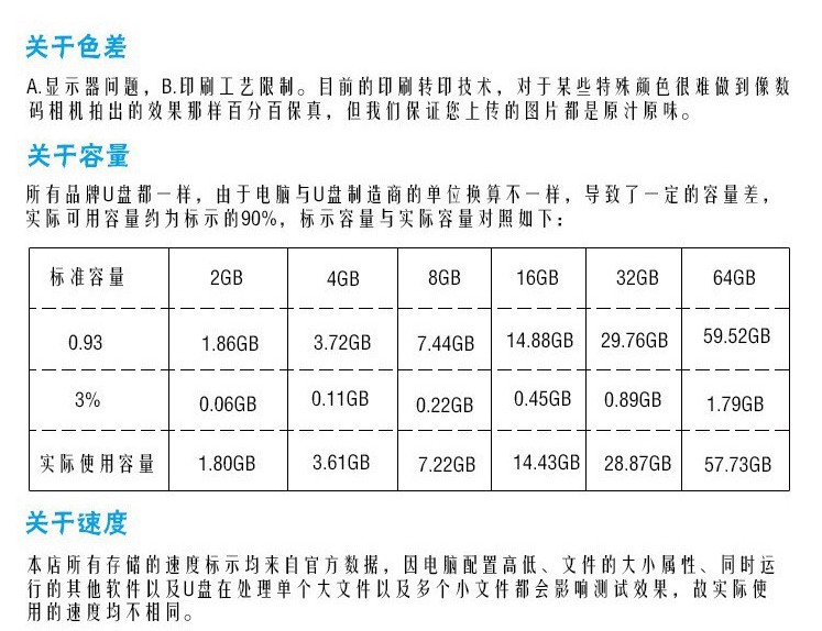 關于U盤容量:
