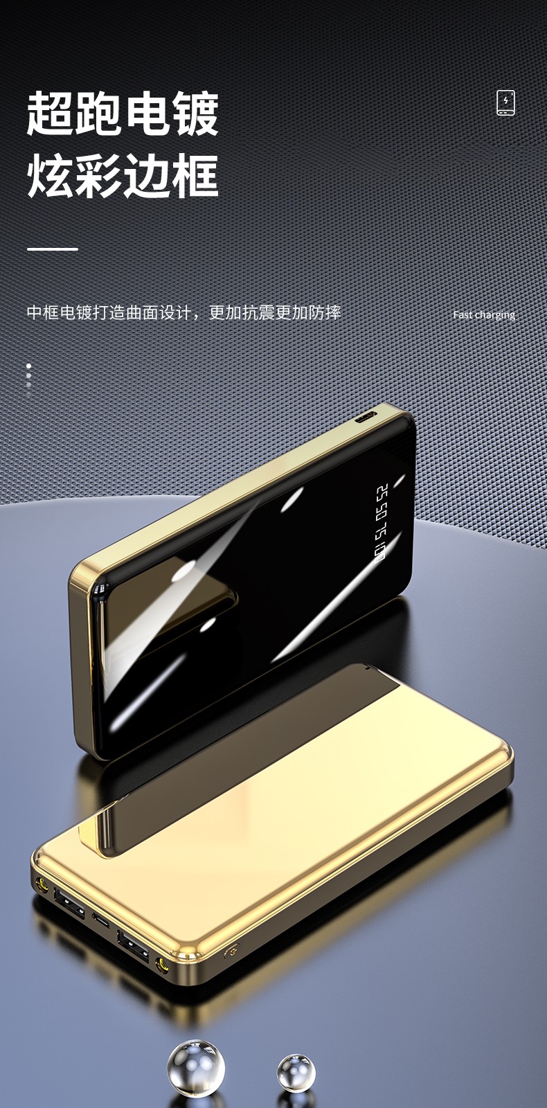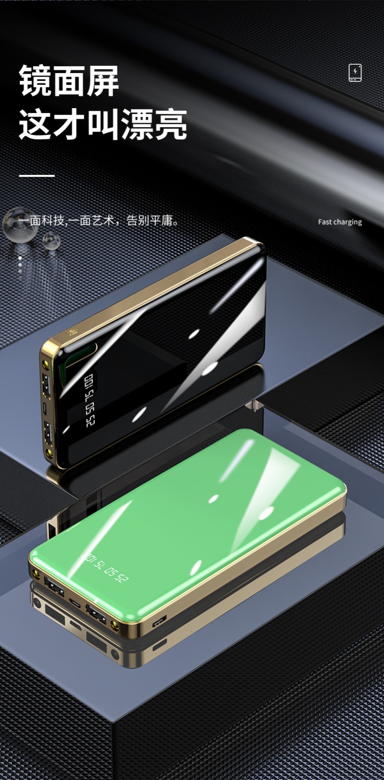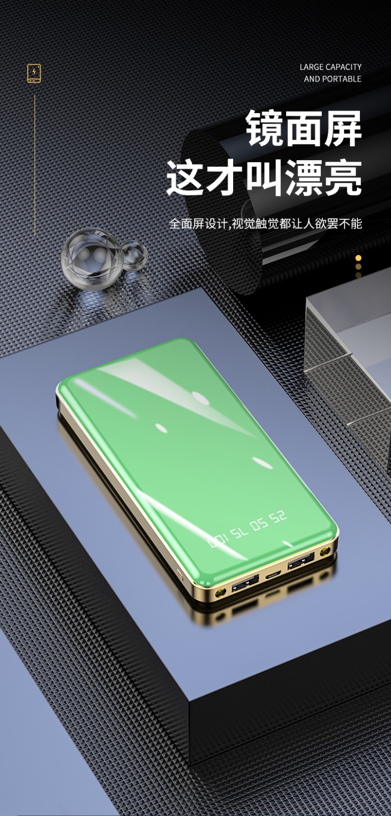 產品材質:全面屏翡翠鏡面時尚設計+底殼電鍍工藝