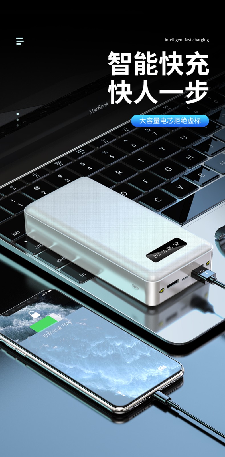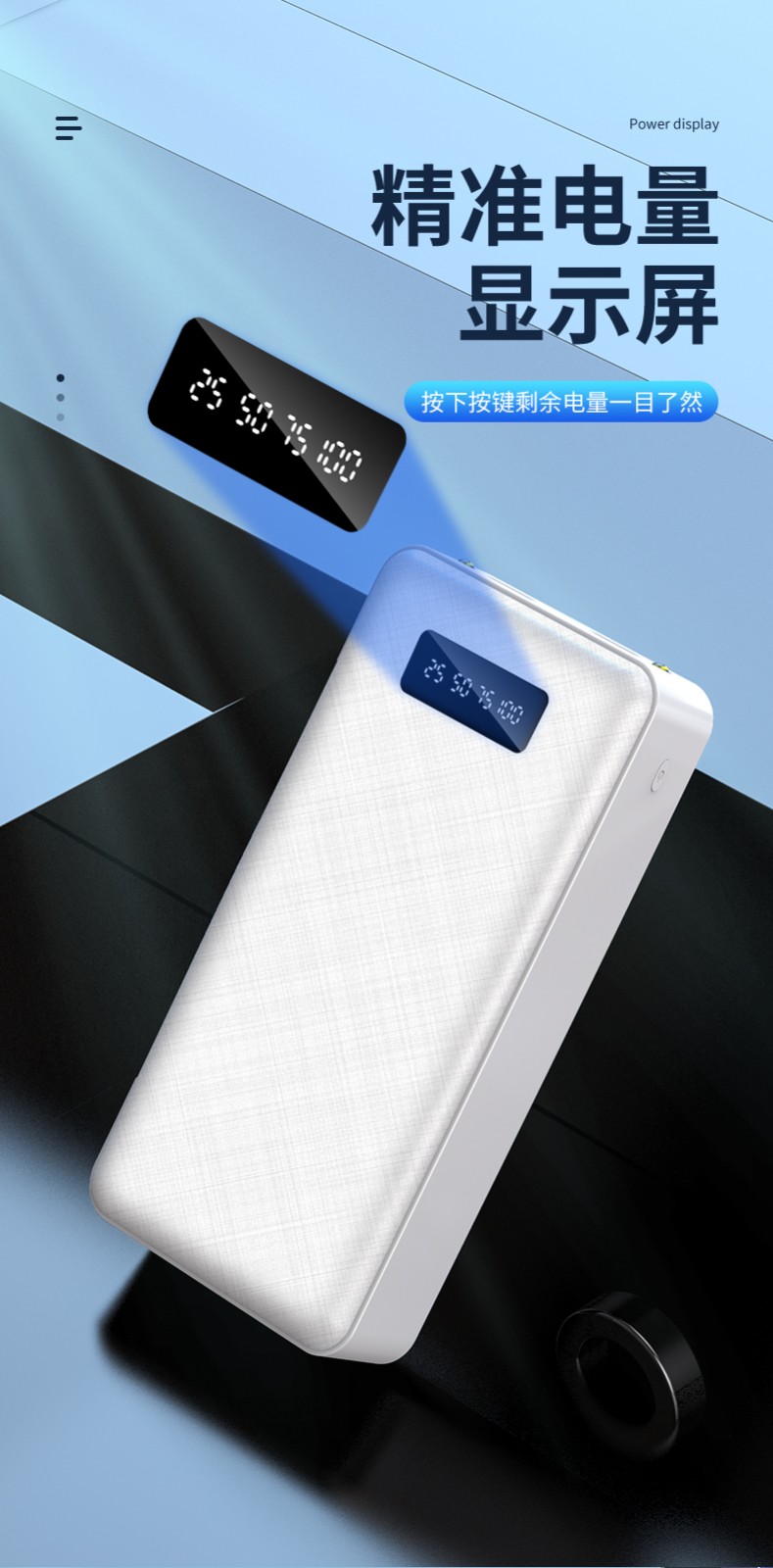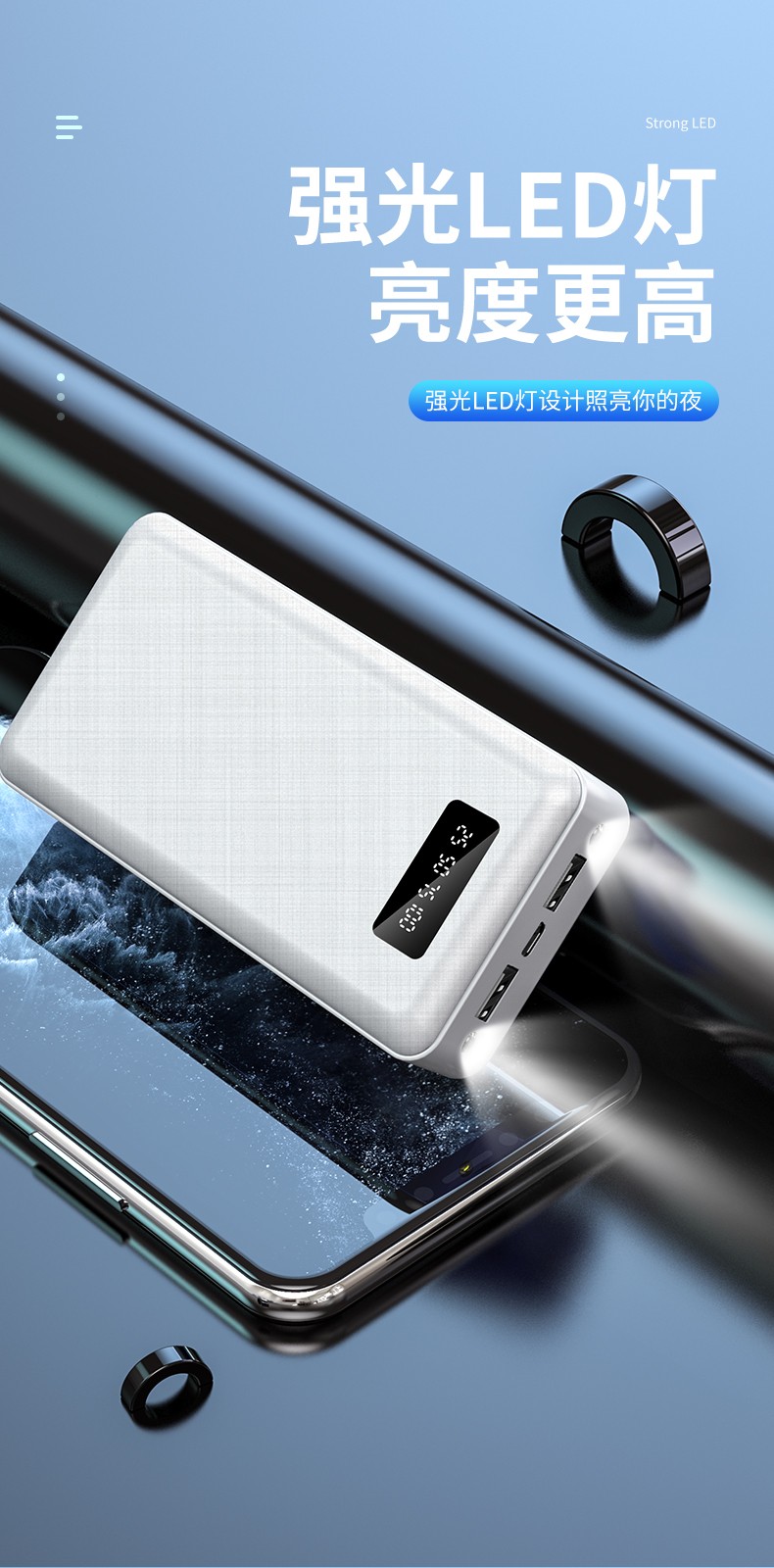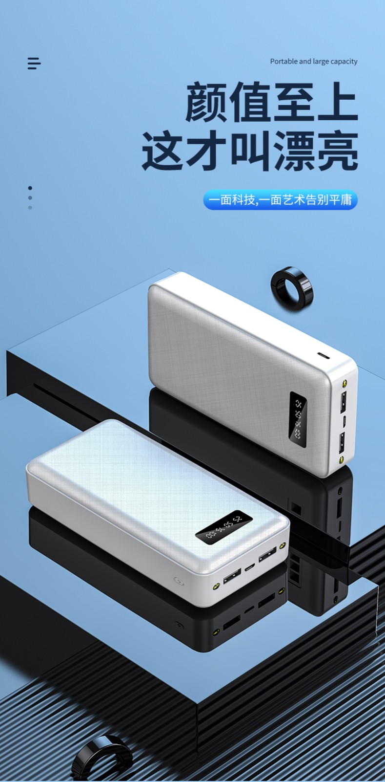 產(chǎn)品功能:帶數(shù)字電量顯示;雙USB輸出,Type-c+Micro雙輸入,2A輸入輸出;自帶強光手電筒;
