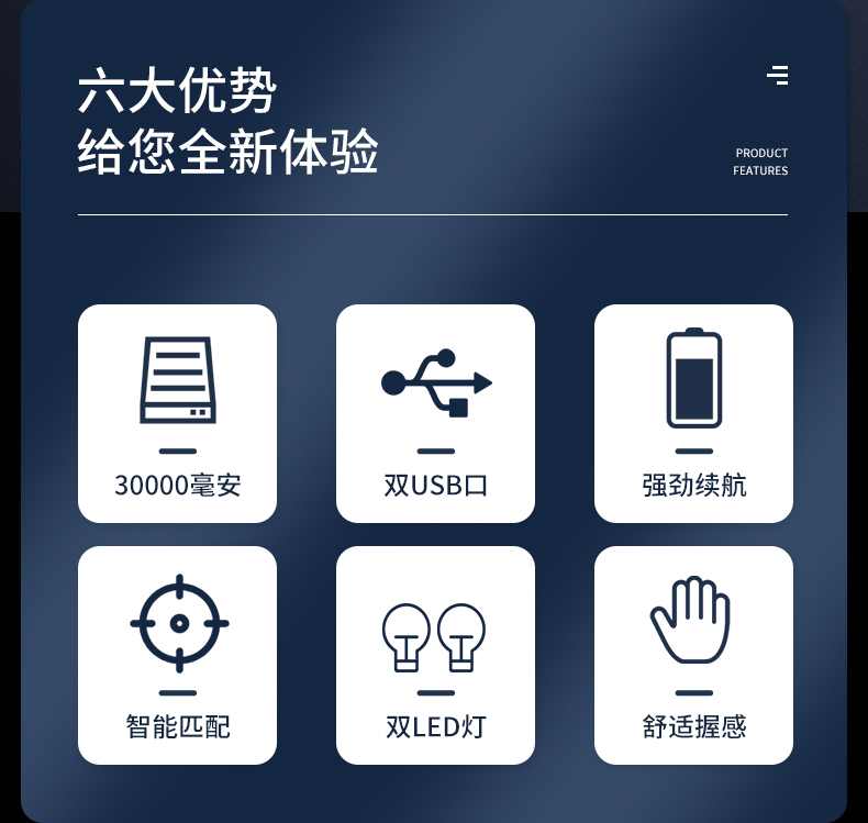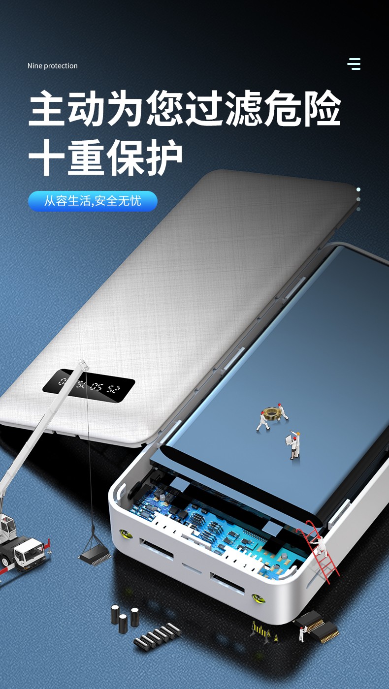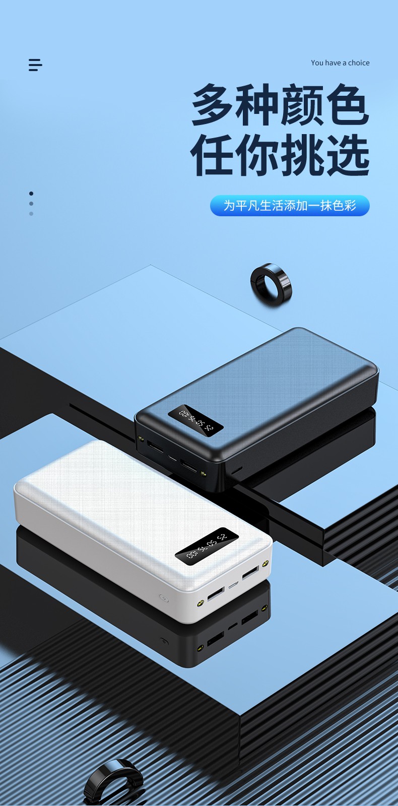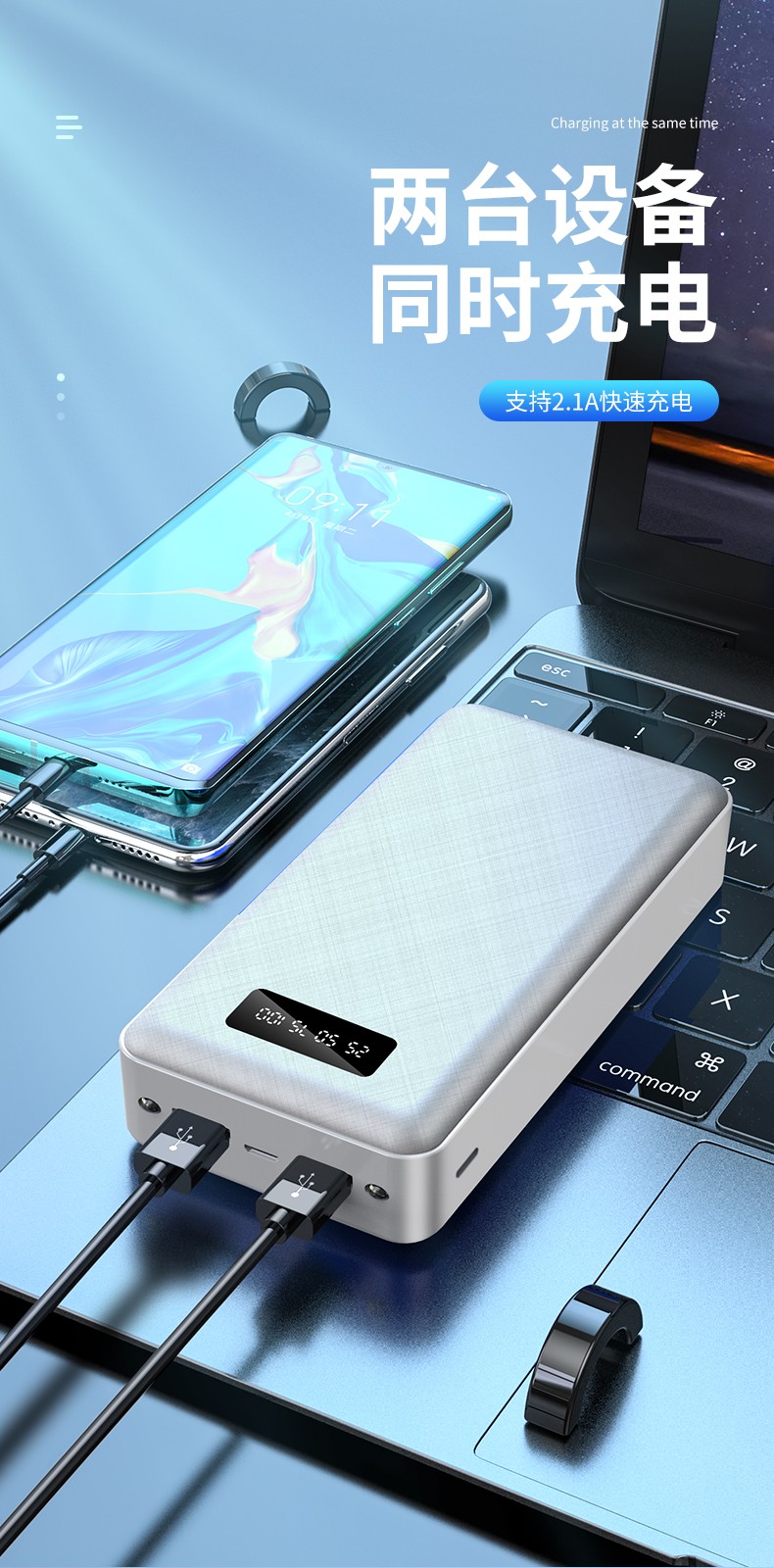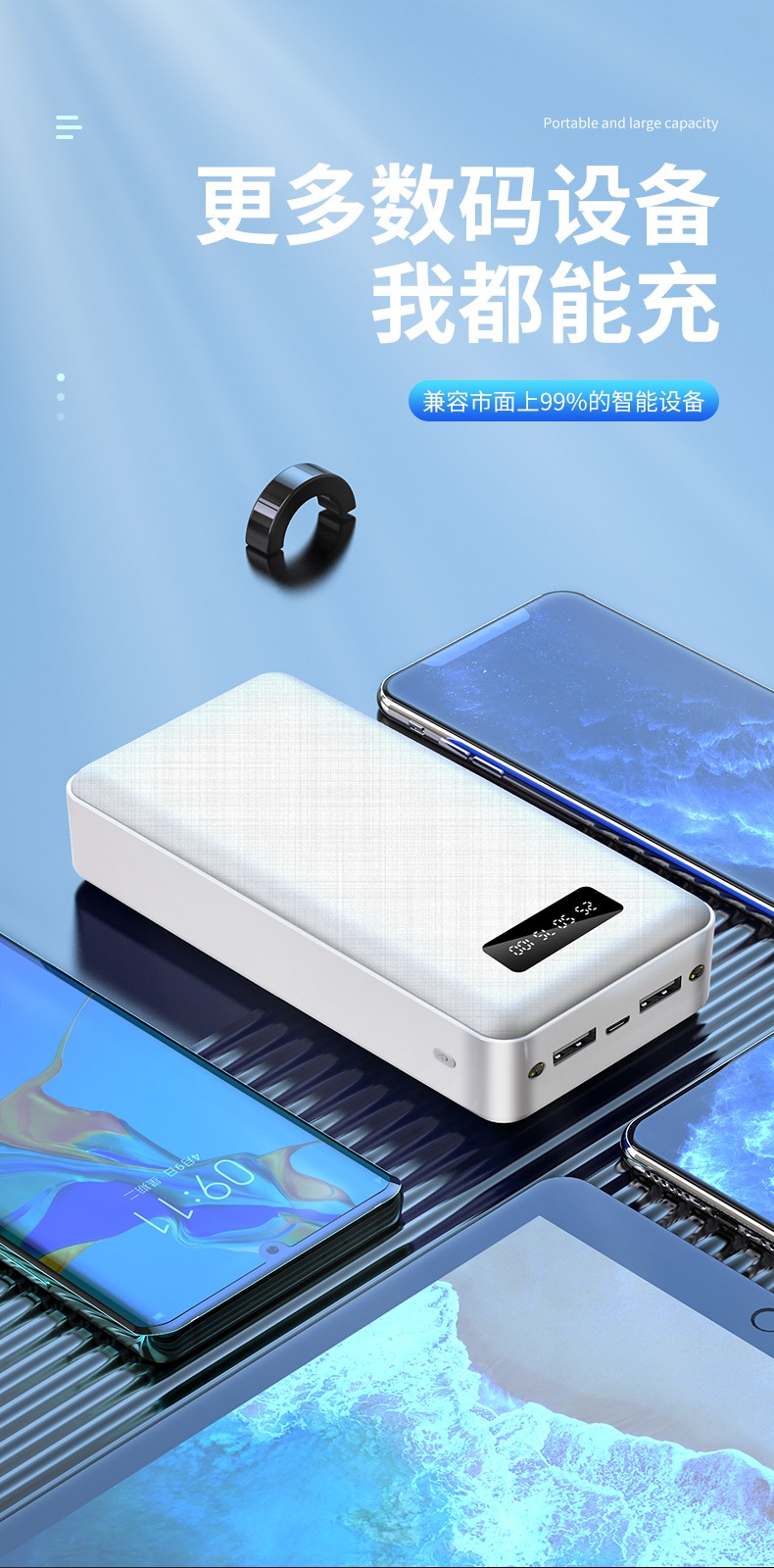 產(chǎn)品功能:帶數(shù)字電量顯示;雙USB輸出,Type-c+Micro雙輸入,2A輸入輸出;自帶強光手電筒;